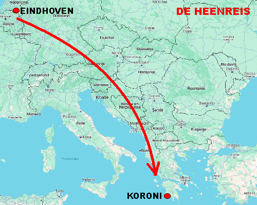 Ons einddoel, Koroni, ligt in het zuid-westen van de Peloponnesos. Net buiten Koroni reserveerden we een huisje voor de gehele maand juni.