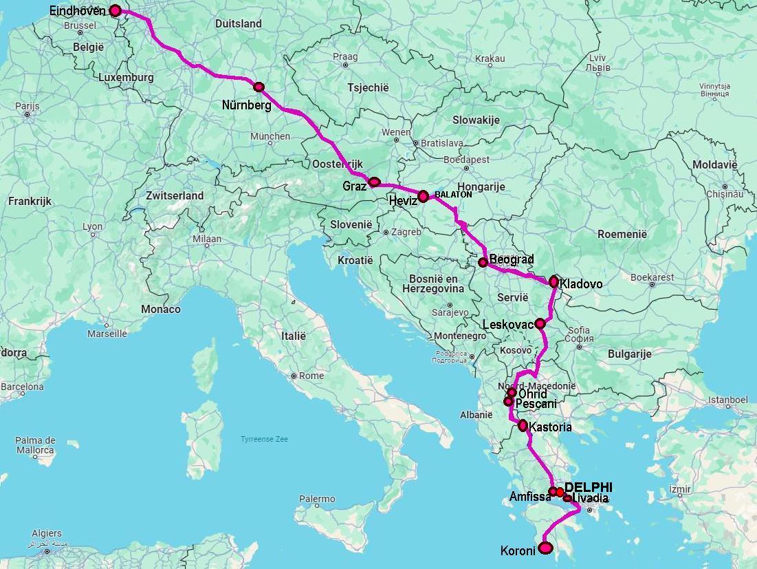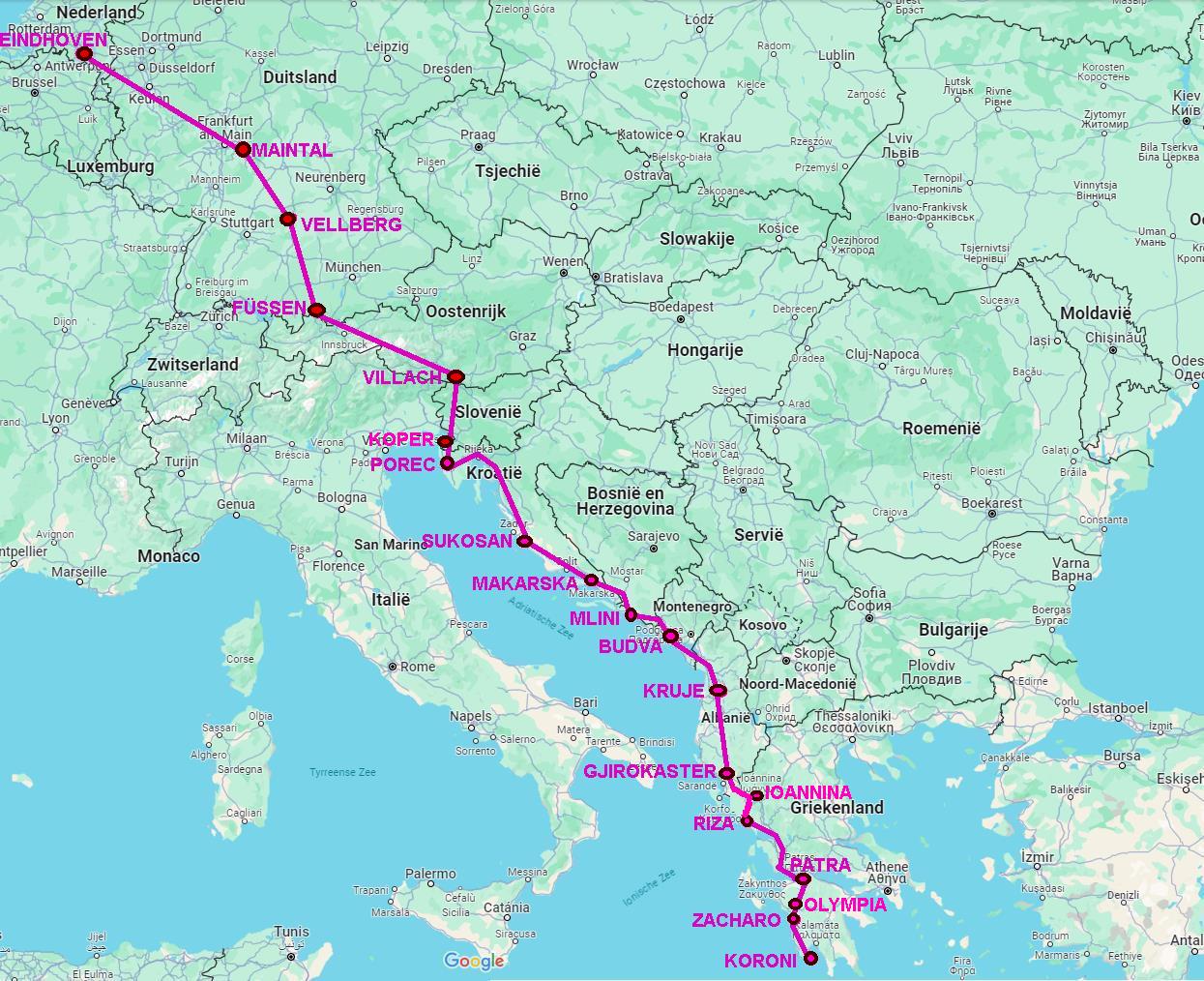 Daarna verder door Oostenrijk, Slovenië, Kroatië, Montenegro en Albanië naar Griekenland.