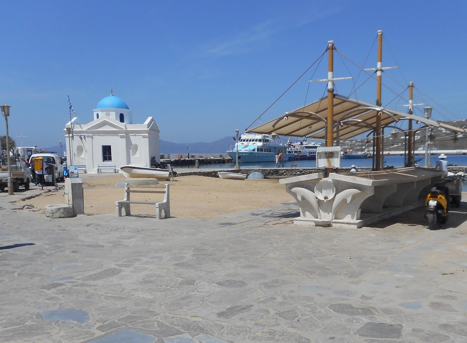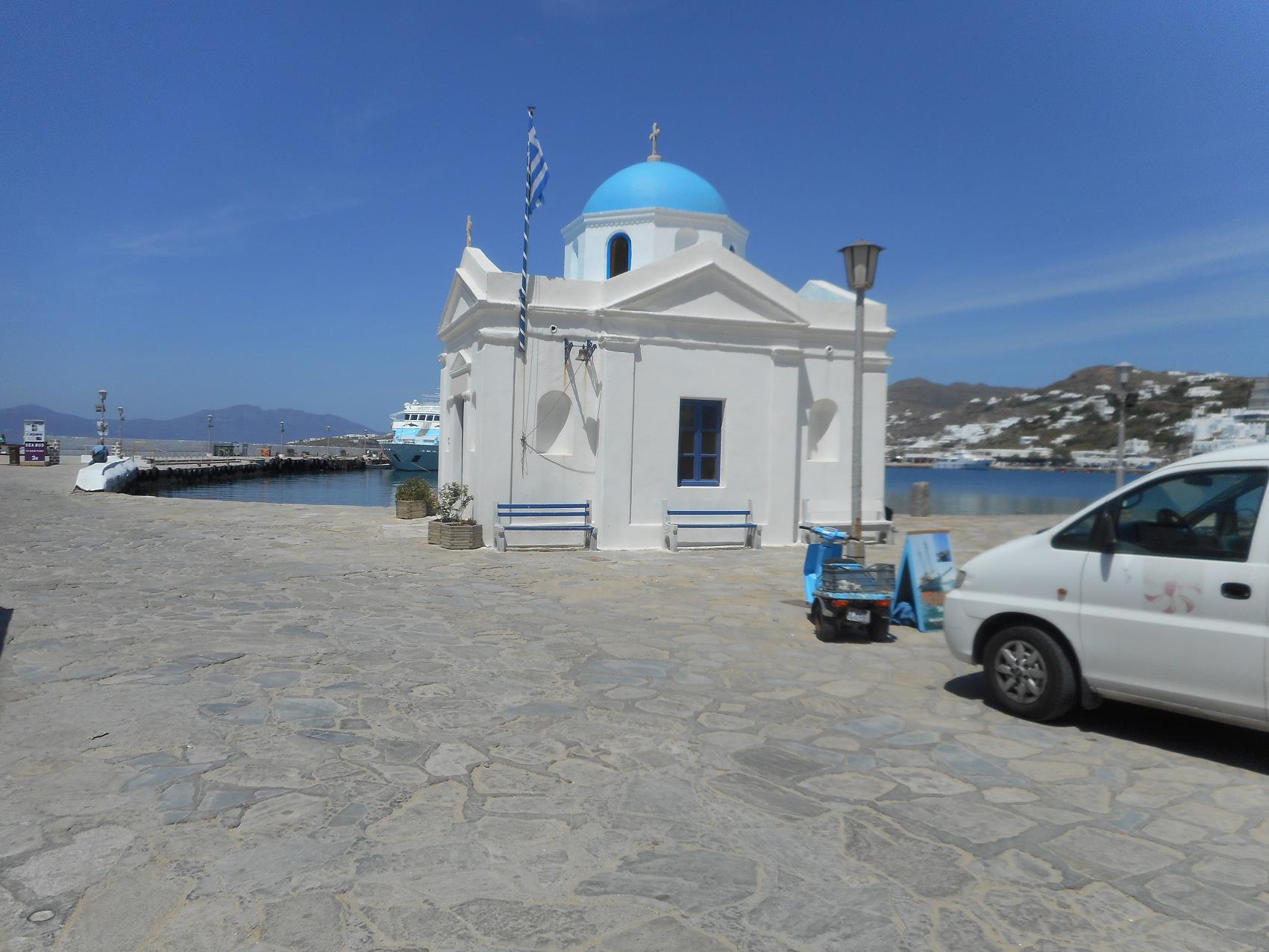 Het appartementencomplex Paola's Town is één van de vele goede plekken voor een de overnachting tijdens je vakantie op Mykonos. De appartementen liggen aan de buitenste ringweg rond de hoofdstad. Wanneer je de weg oversteekt, een beetje naar rechts loopt en dan de eerst weg links neemt, kun je in één lange afdaling naar het centrum lopen en van daaruit verder naar Alefkandra en Kastro. Heb je de beschikking over een auto of scooter, dan ben je meteen op weg naar het noorden, zuiden of oosten van het eiland. |
