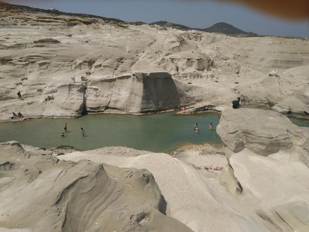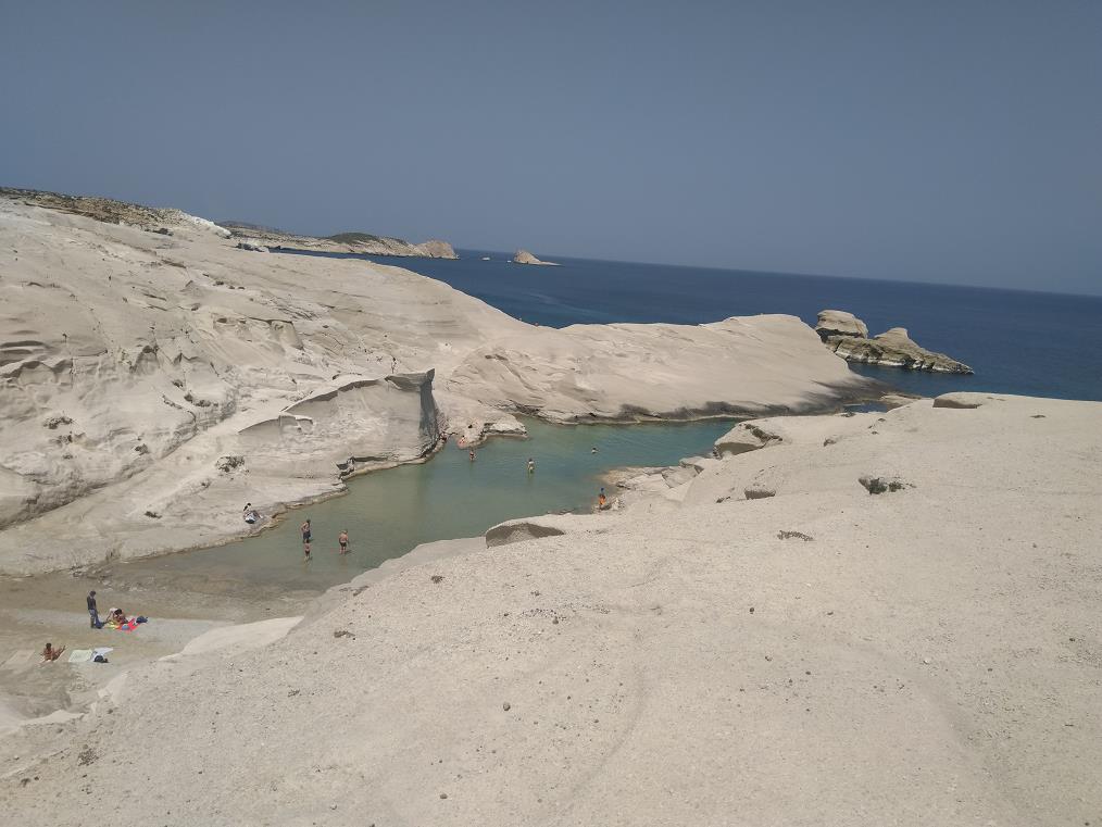 tijden van de dag komen er mensen en die kijken van alle kanten neer op het strandje. Maar hoe dan ook; wanneer je Milos bezoekt, moet je