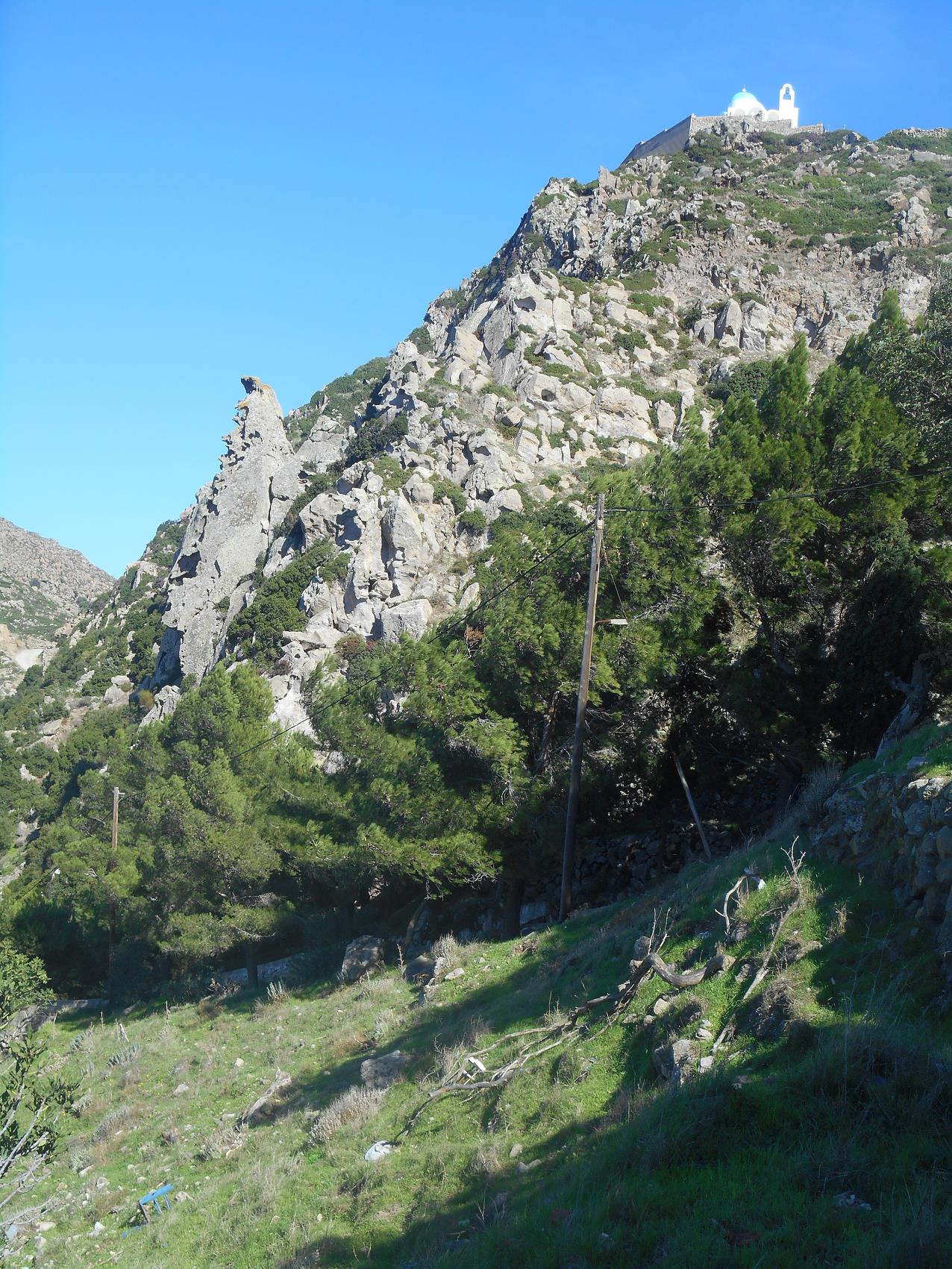 Mandraki valt op met zijn mooie witte huisjes met de platte daken. Boven Mandraki uit,