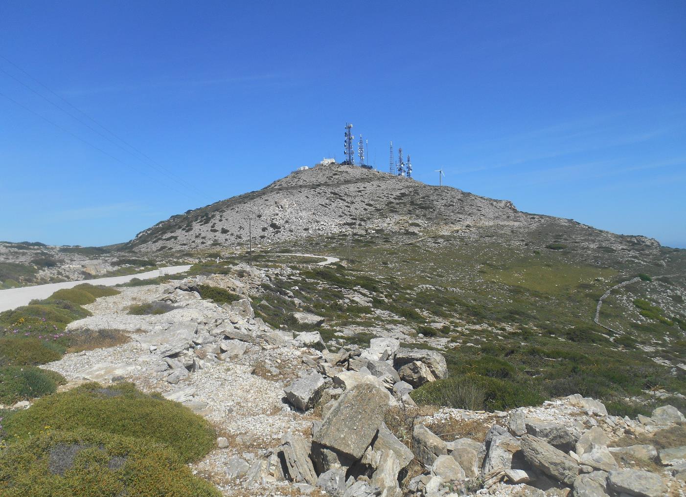 De hoogste top van Paros, dichtbij het Ag. Ioannisklooster, midden op het eiland, is 700 meter.