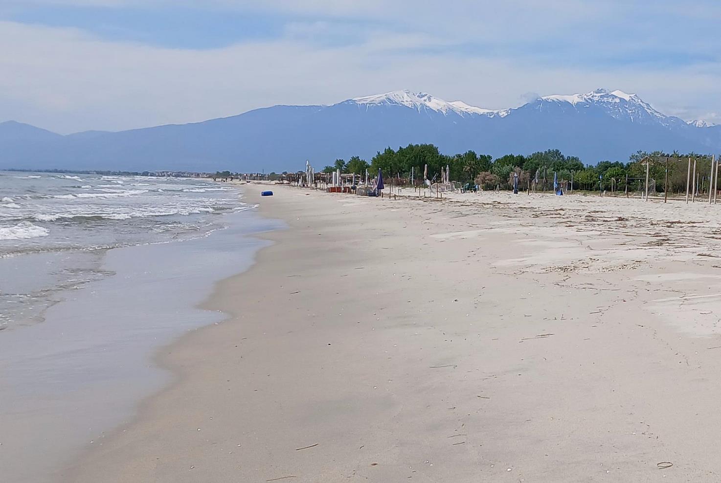is daar het strand van Korinou, ter hoogte van Katerini, ligt Paralia, met een rechte weg direct verbonden met de stad.