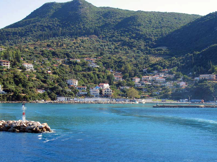 Poros-stad kenmerkt zich door een mengeling van witte en pastelkleurige huizen op de heuvel boven de jachthaven.