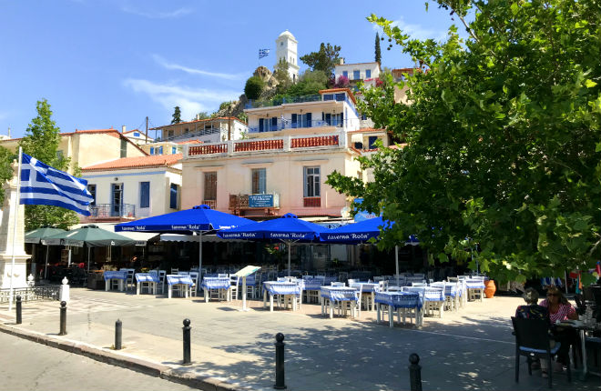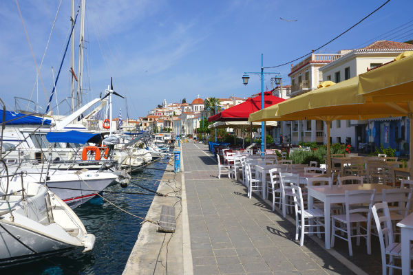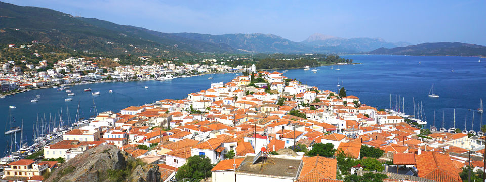 Voor het mooiste uitzicht op Poros-stad, moet je eigenlijk niet in Poros zijn, maar aan de overkant; dus op de Peloponnesos. Het