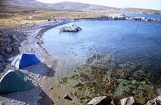 Rinia en Dilos zijn de kleine eilandjes die ten zuid-westen van Mykonos liggen. Rinia bstaat uit twee delen. Op de kaart is duidelijk te zien dat beide delen met elkaar verbonden zijn door een smalle landreep. |