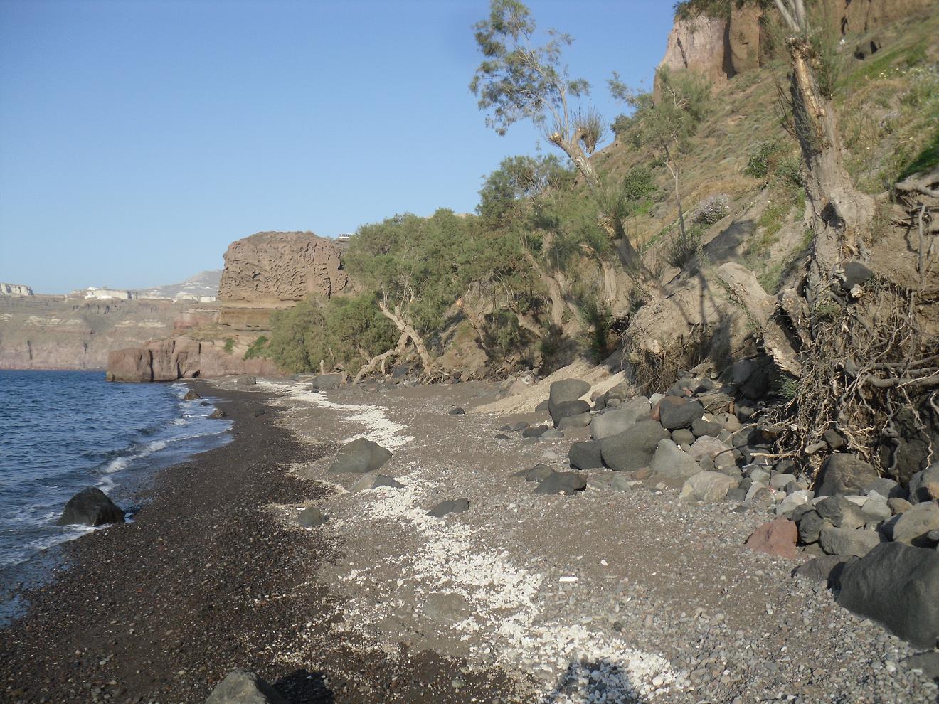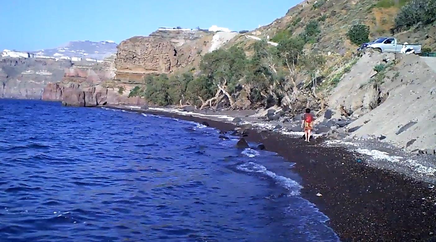 grenst aan de caldera en daarom ligt het voor de hand dat daar de meeste stranden zijn.