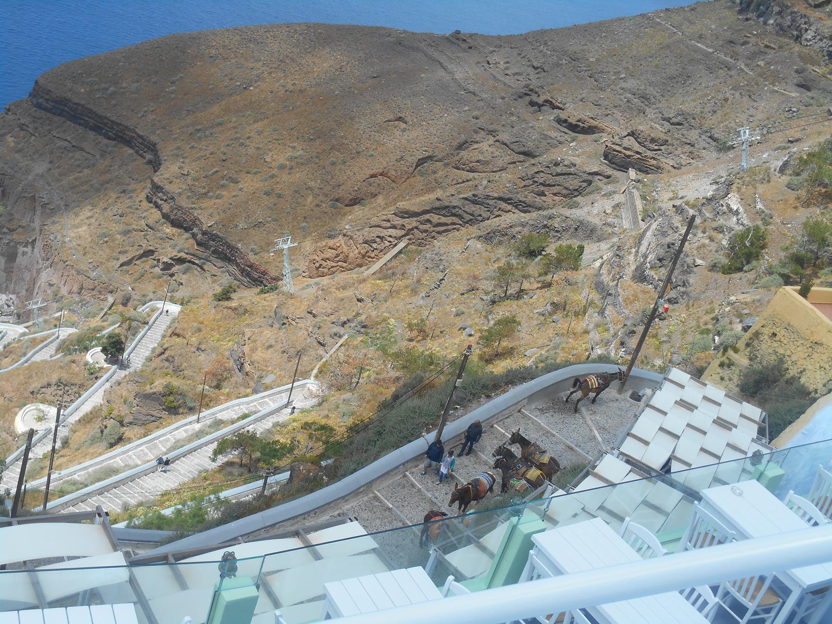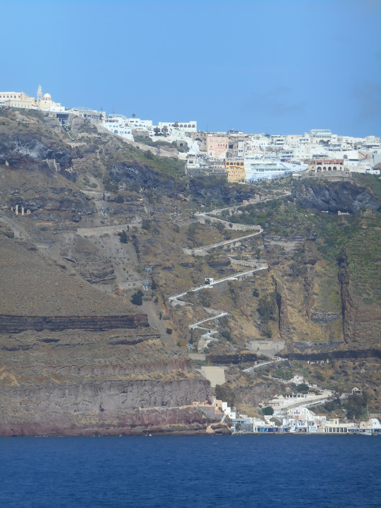 doolhof van smalle straten. Het is op een unieke wijze gebouwd, aan de rand van de steile kliffen van de caldera