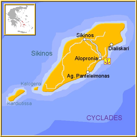 de opvolger van de oude Níssos Thíra, en door de Panagía Tínou. Vanuit Piraeus duurt de overtocht vrij lang,