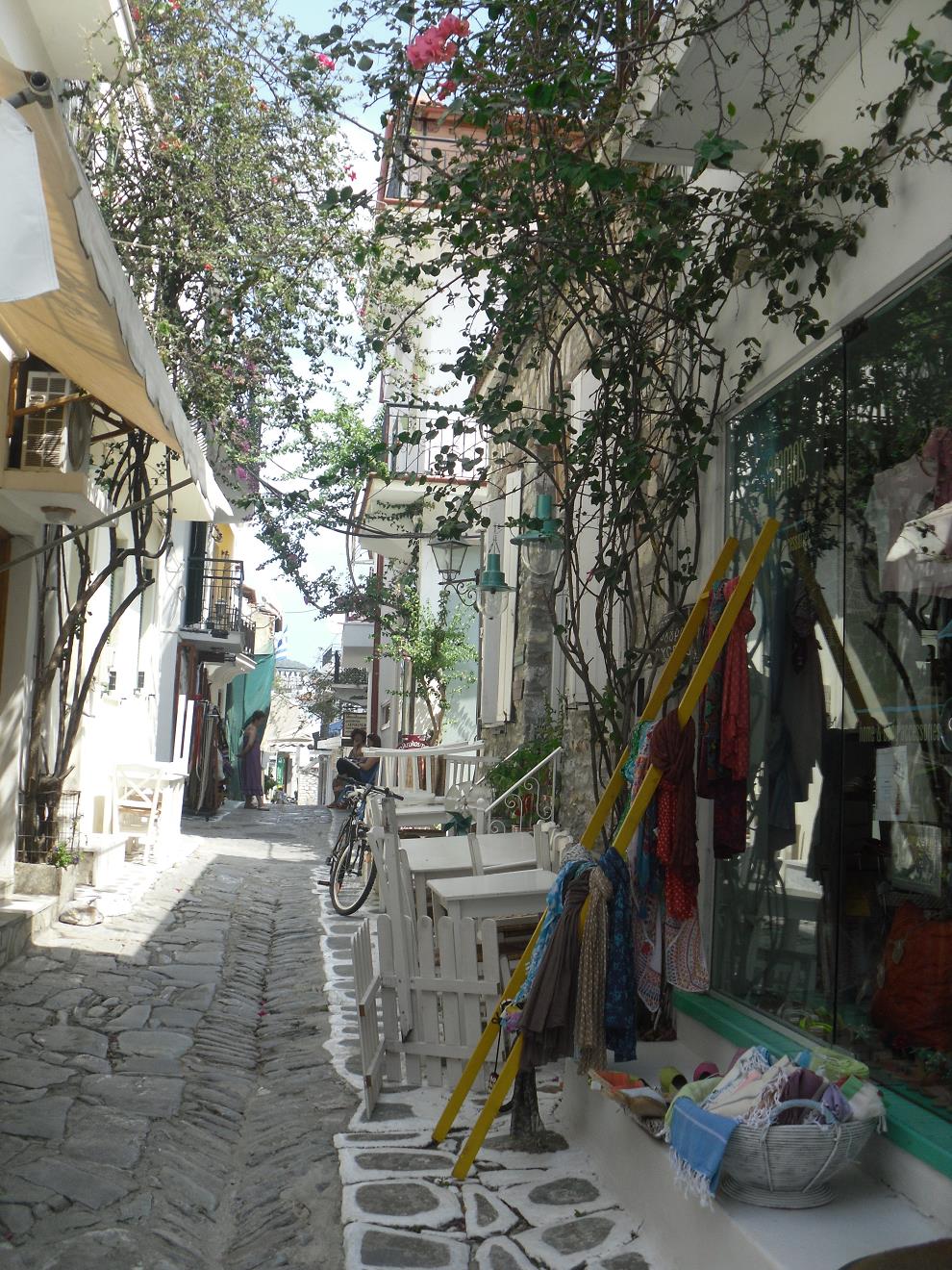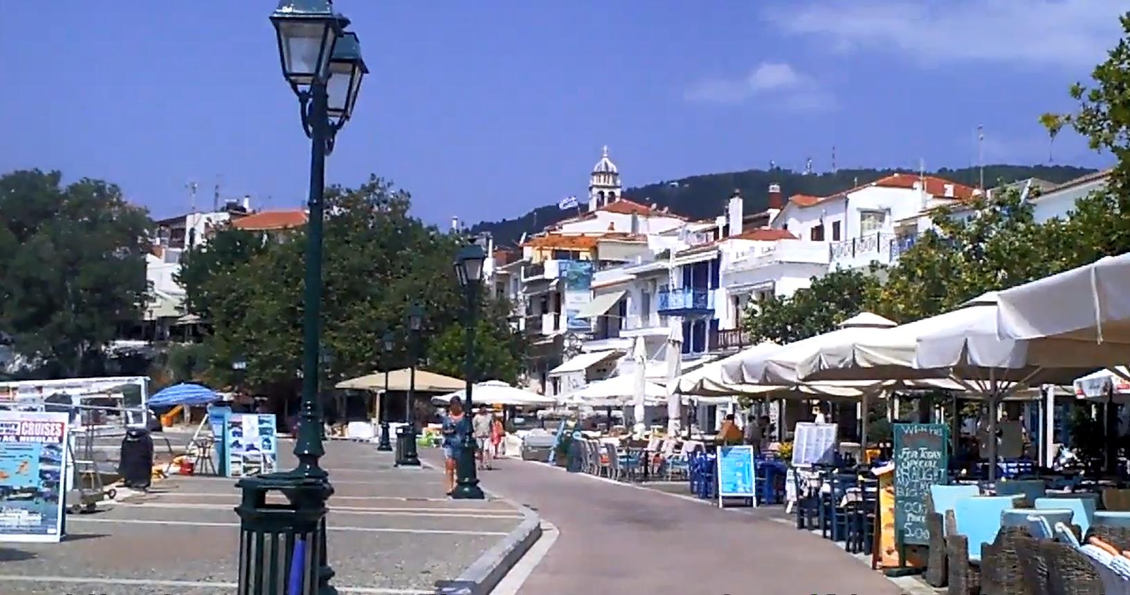 Griekse eilanden, wordt Skiathos-stad Chora genoemd door de Grieken. Het is er vaak gezellig druk.