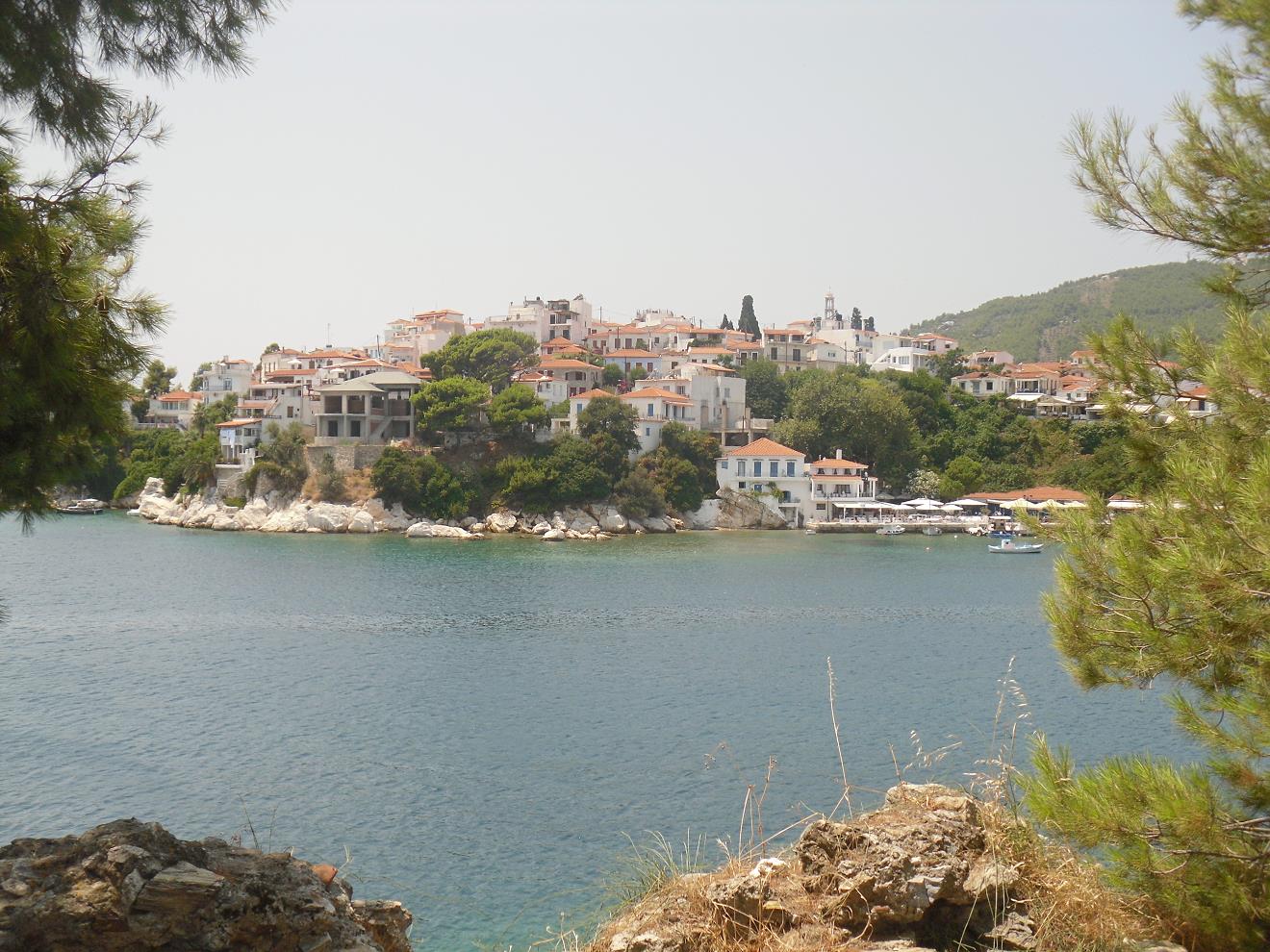 Skiathos-stad, de hoofdstad van het eiland Skiathos ligt in het noord-oosten van het eiland. Zoals veel hoofdsteden van