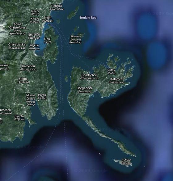 Skorpios ligt aan de oostkant van Lefkada, in de Ionische zee, ongeveer 1000 meter vanaf het schiereiland Geni.