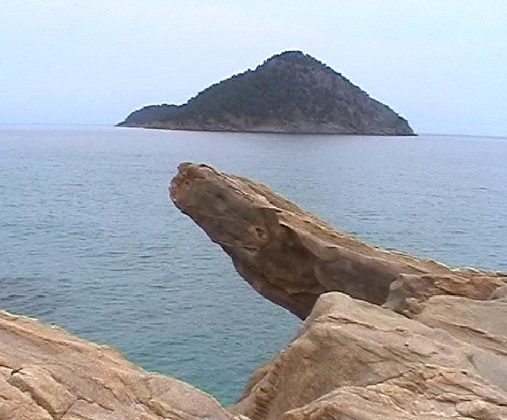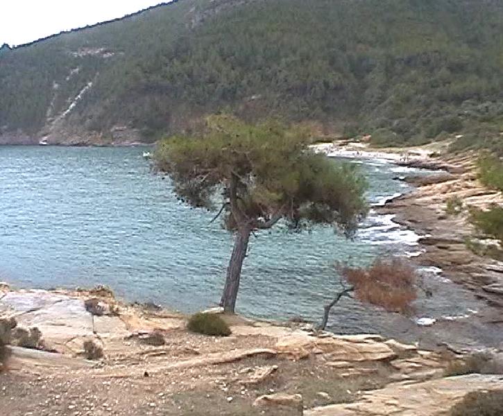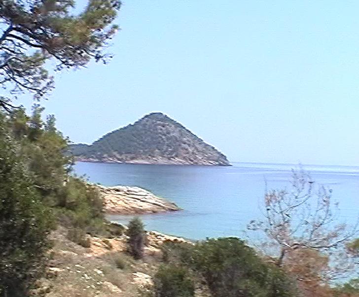even voorbij Krini. Wanneer je het strand oploopt heb je links het naturistengedeelte, dus aan de noordkant.