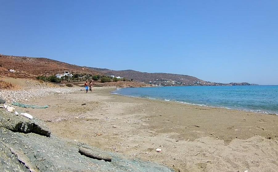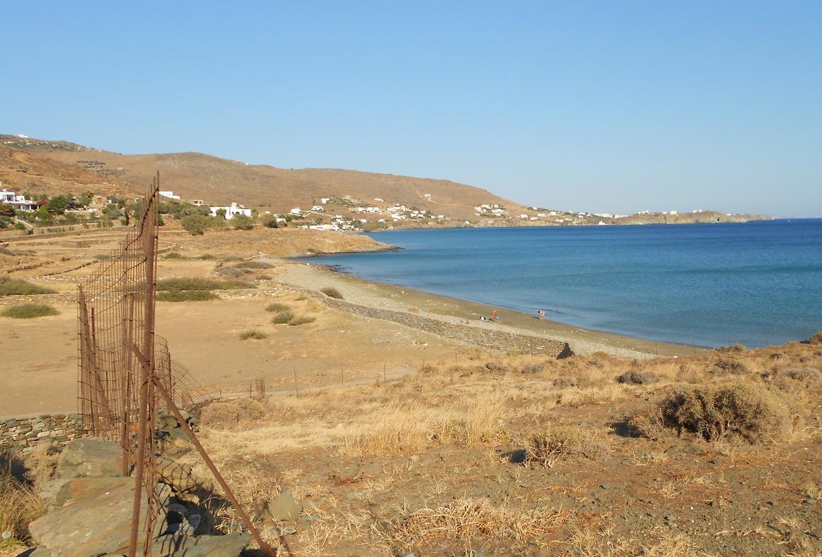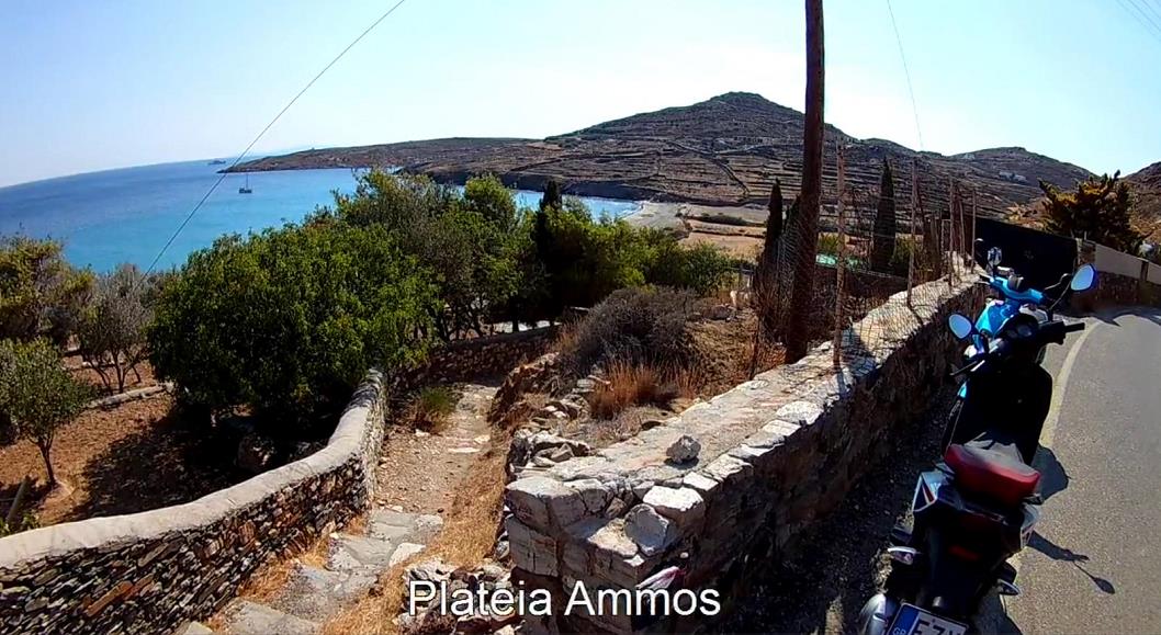 Je kunt er komen vanaf Plateia Ammos. Je loopt vanaf de trap naar naar rechts tot het einde van het strand