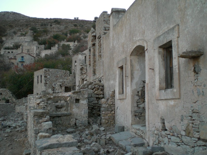 verlaten strandjes. Het kerkje van Moni Agiou Panteleimona bevat 18e eeuwse fresco's. Rond het jaar 1000 v.Chr.