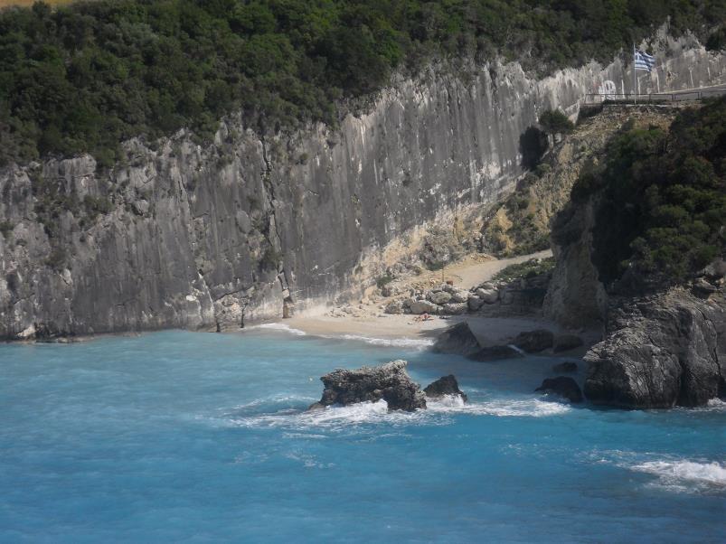worden gekenmerkt door de geur van zwavel. Het strandje met de naam Pelagaki zie je op de onderste foto's.