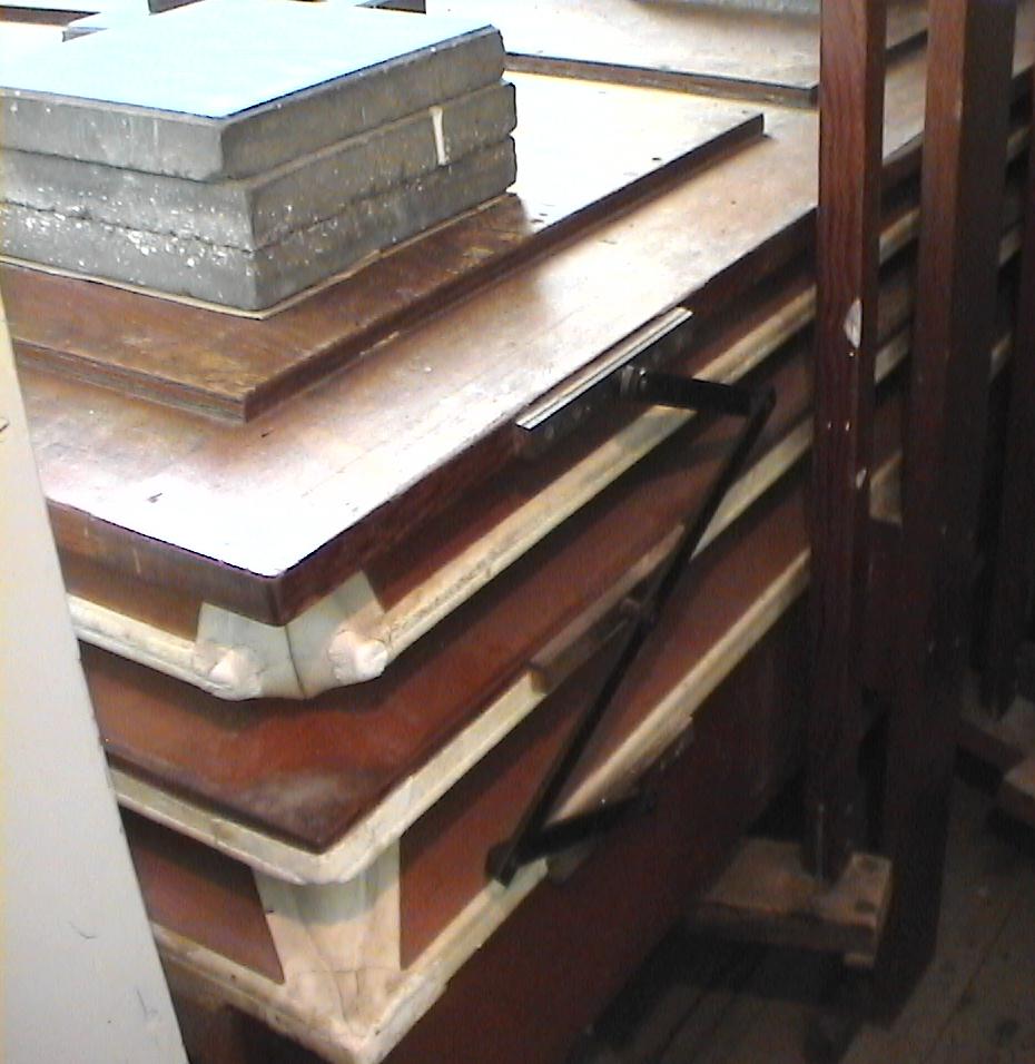 De lucht die naar de pijpen wordt gestuurd komt uit een groot reservoir dat onder druk staat. Dit deel van het orgel is de blaasbalg.