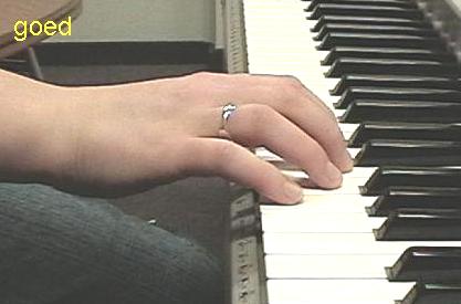 ![]() Een veel voorkomende fout is ook dat kinderen hun handpalmen zo ver laten zakken, dat ze onder de witte toetsen komen te hangen. Meestal levert dit een slechte aanslag op. Er zijn vaak veel blijvende aandachtspunten, wat betreft de houding en de manier van spelen, maar het is minstens zo belangrijk om te benadrukken wat een leerling wél goed doet! |