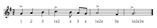 Bij de driekwartsmaat komen er telkens 3 tellen in iedere maat. De kwartnoot is teleenheid.