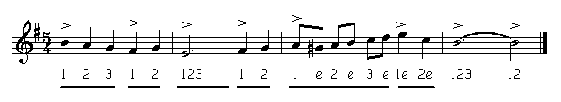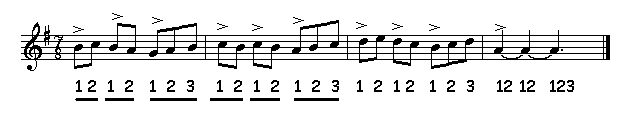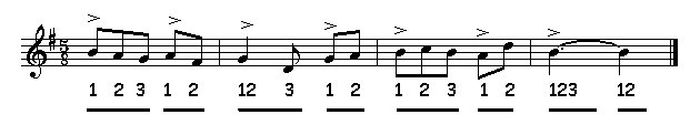 vijf-achtsten-maat samengesteld 2-delig: 3 + 2 of 2 + 3 onregelmatig |