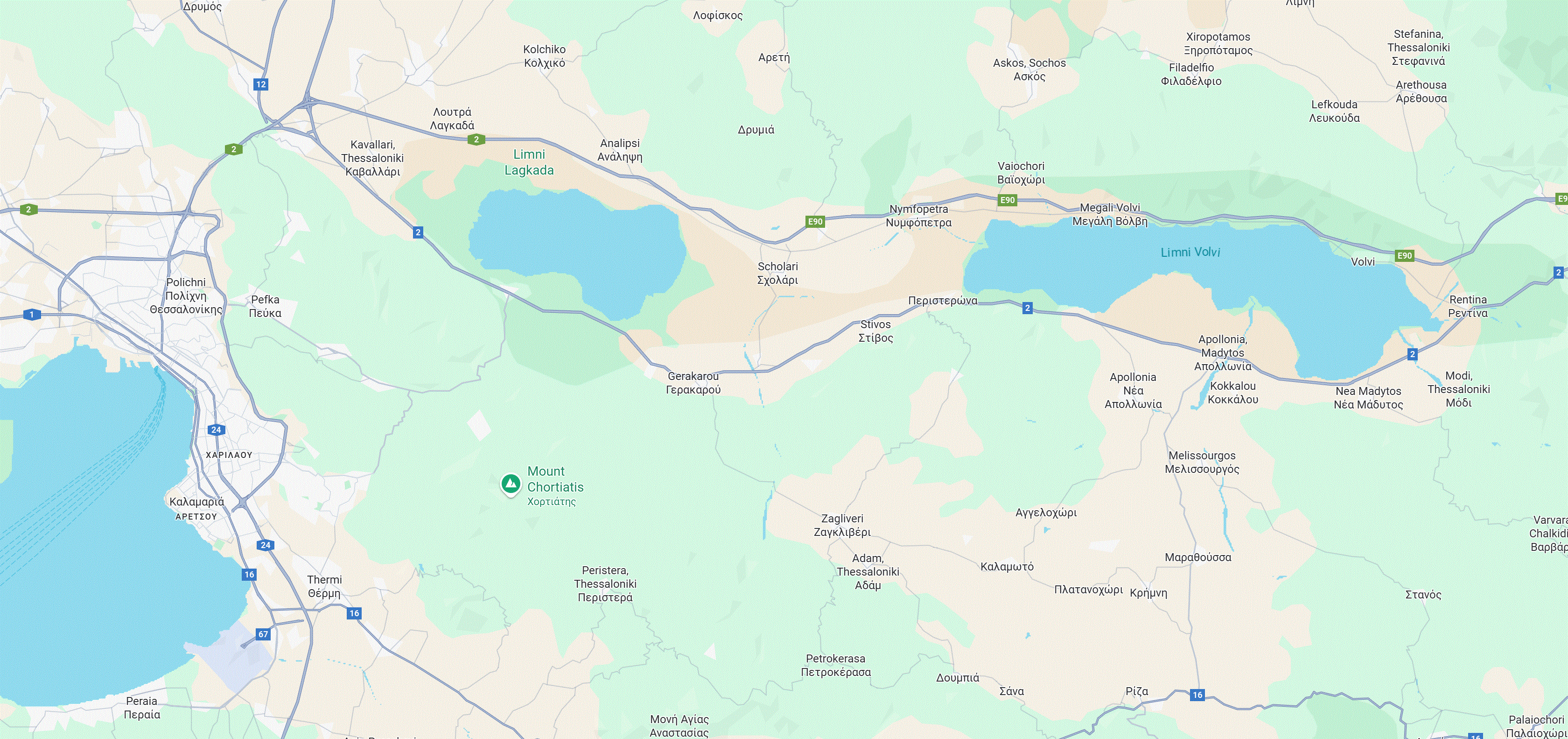Nymfopetra ligt een kleine 40 km ten oosten van Saloniki, tussen de beide meren aan de oostkant, in het noorden van Chalkidiki. Het dorp wordt soms