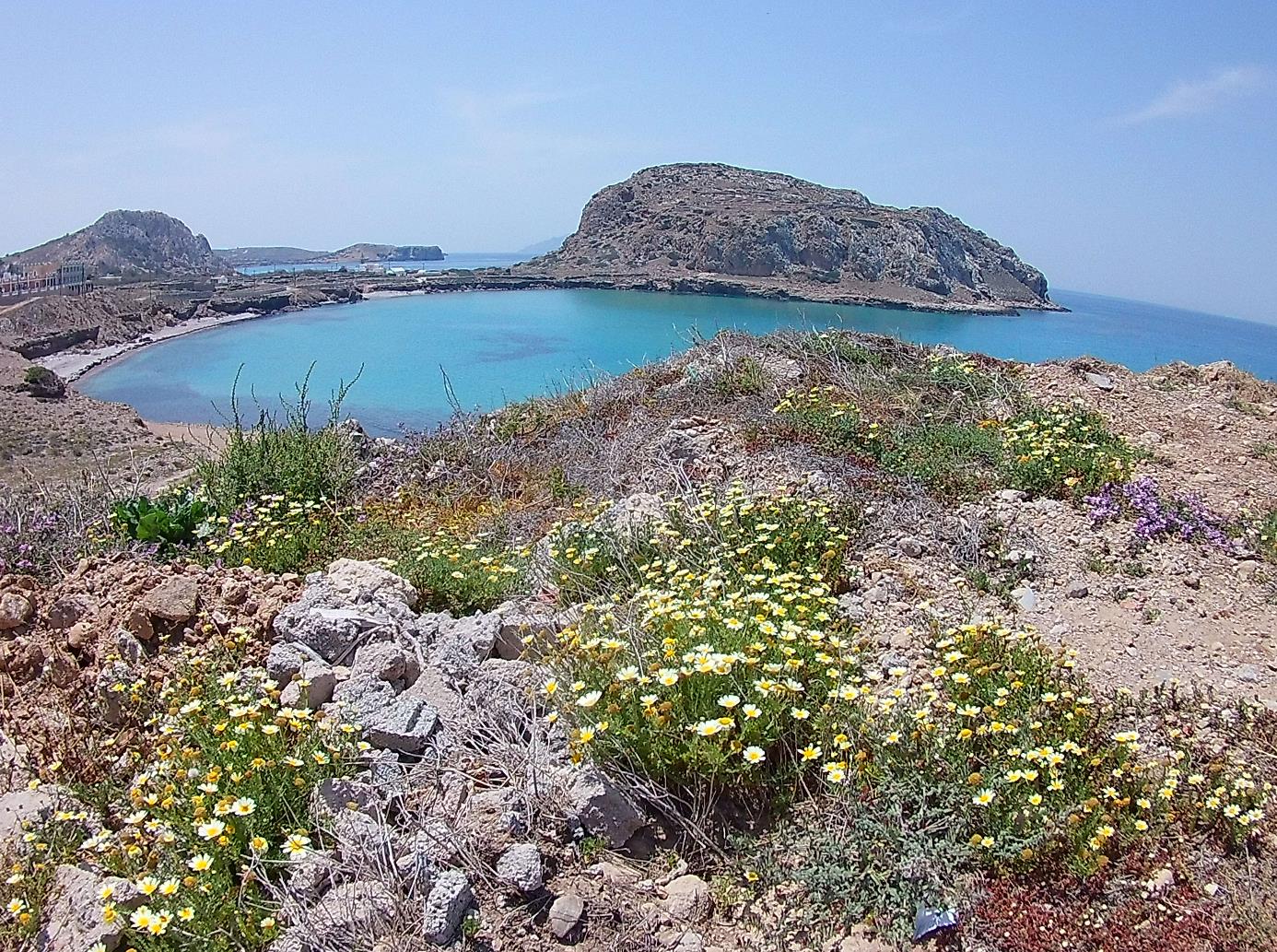 waar de Griekse sfeer nog volop aanwezig is. Er is een mooi strand, aan de voet van de rots. Karakteristiek