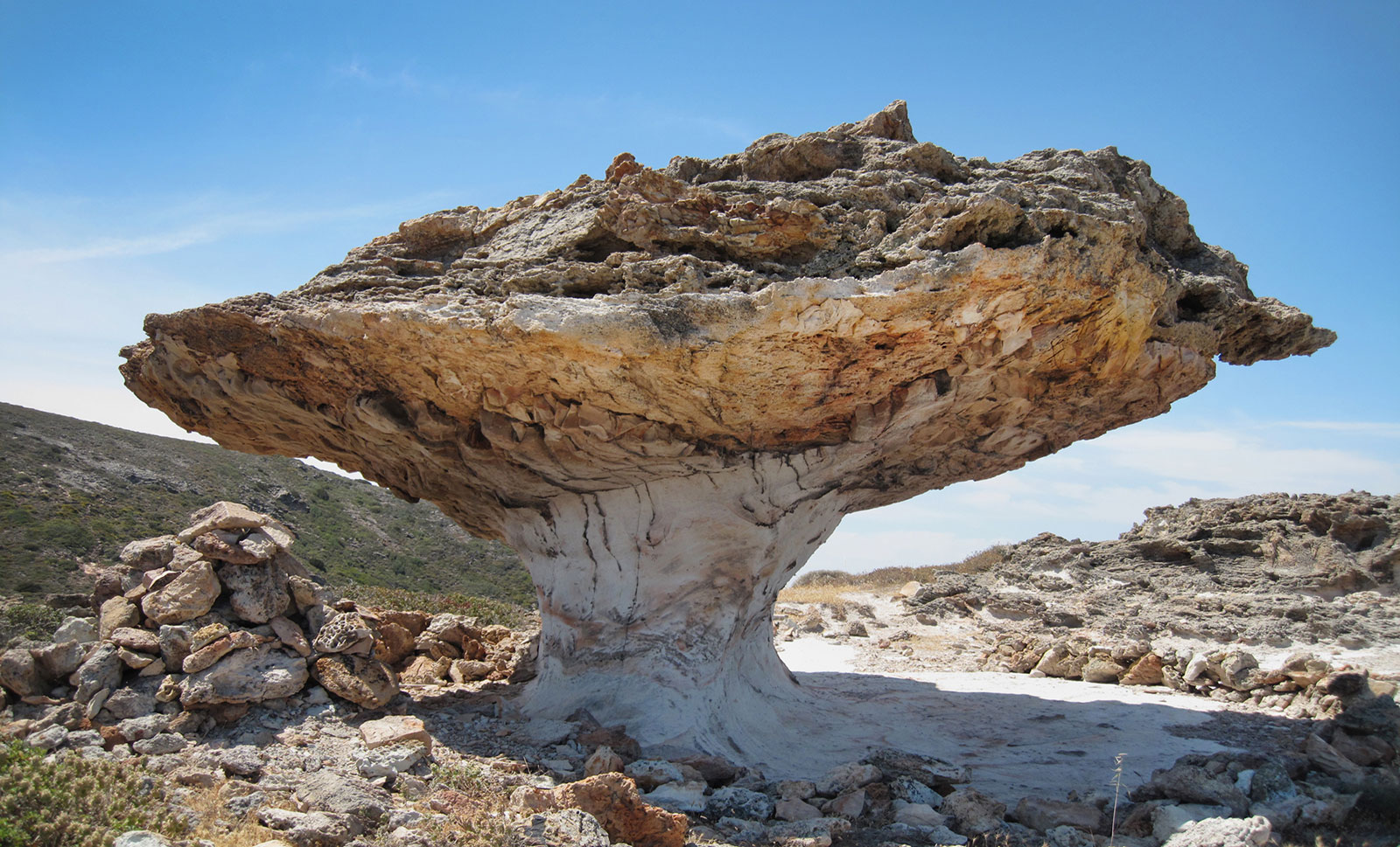 In een half uur kun je met de boot vanaf Pollonia op Milos naar Kimolos overvaren. Dat is dus ideaal wanneer je
