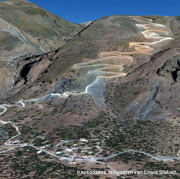 Er loopt een weg van Frangokastello, aan de kust, via Kapsodasos, naar Kallikratis.