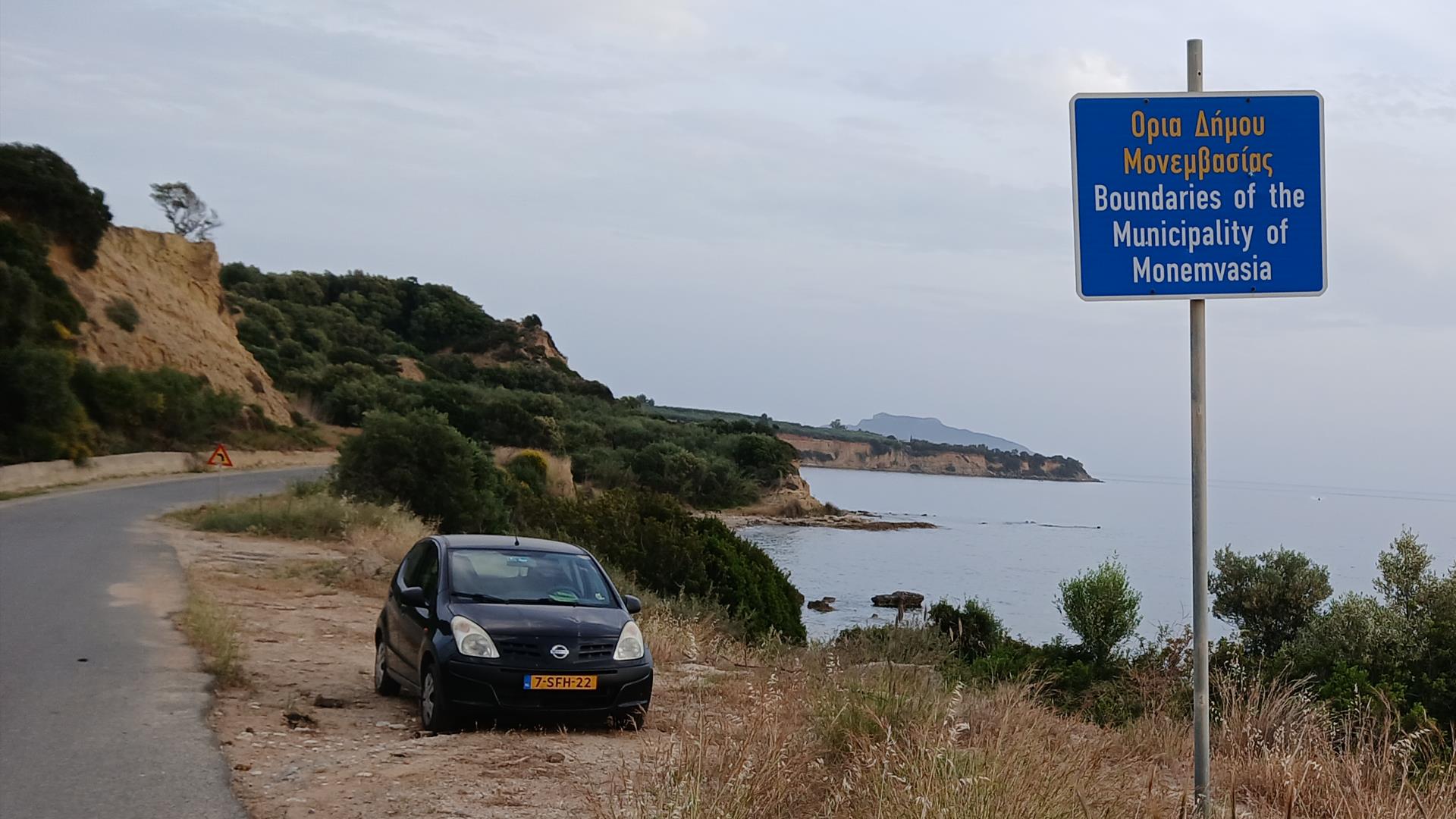 Bovendien staat er een bordje met de aanduiding van gemeente Monemvassia.