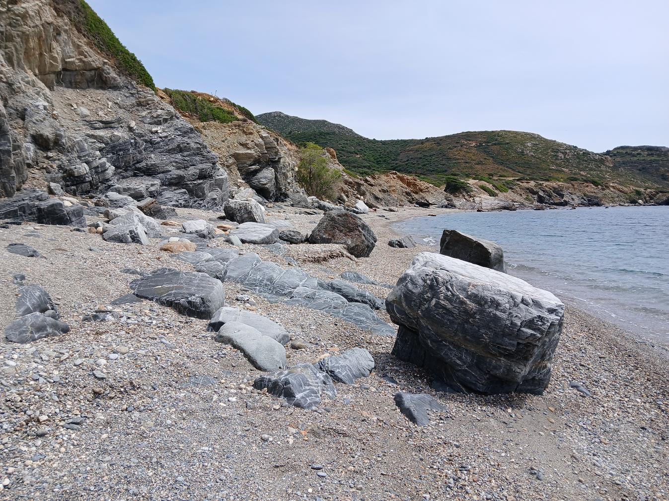 Het strandje op deze pagina, ten zuiden van Platanias, bestaat deels uit zand en deels uit kiezels. Er zijn in ieder geval een paar