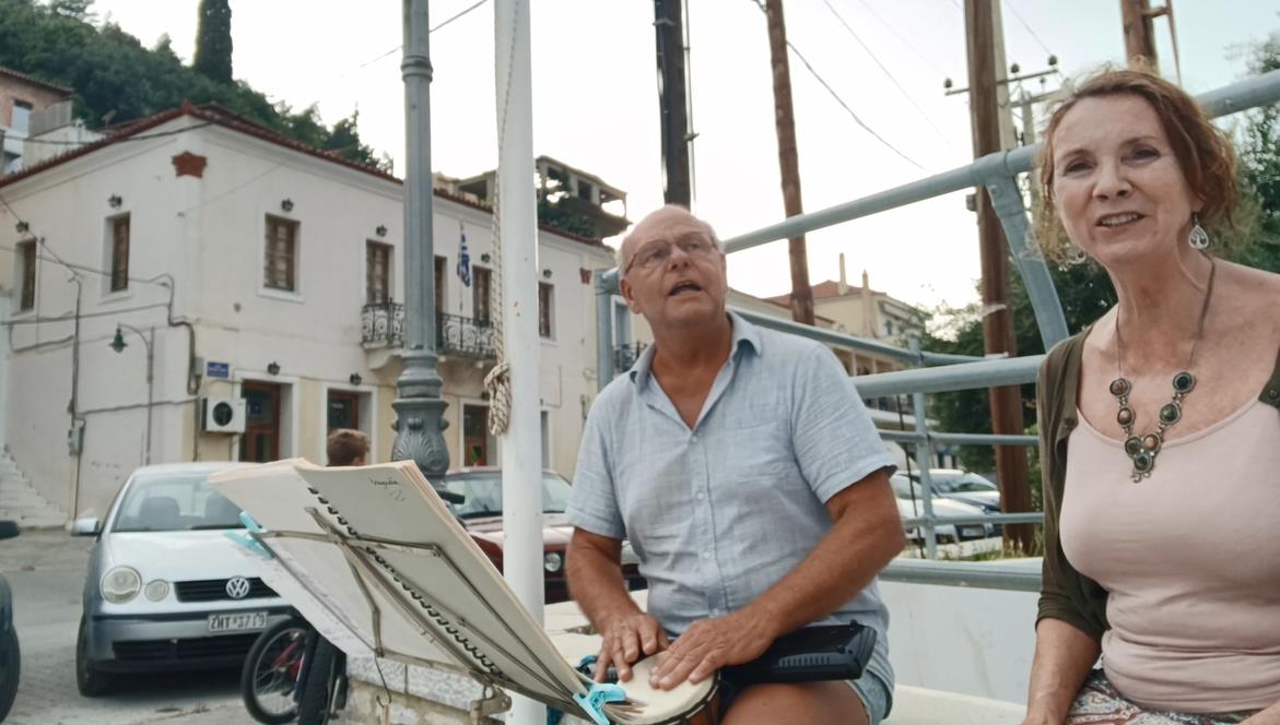 woensdag 14 mei 2025 - naar Sparti en gezongen op het plein. ![]() Het weer was gisteren al een beetje twijfelachtig geworden, met lagere temperaturen en af en toe een flinke regenbui. We ontbeten die ochtend wel op het terras, maar het was aanmerkelijk koeler dan gisteren. Onze plannen om vandaag naar het strand te gaan, lieten we dan ook maar varen. We besloten naar Sparti te rijden om daar te gaan zingen. ![]() Sparti ligt iets verder weg dan Gythio, maar omdat de wegen breder en beter zijn, kun je sneller rijden. De reistijd was daarom ongeveer gelijk en na ongeveer een uur en een kwartier waren we in Sparti. Op de foto zie je de hoge bergen en de dreigende lucht. In de stad reden we eerst eens wat rond om de stad te verkennen. Niet ver van het centrale plein parkeerden we de auto in de straat. ![]() Tegenover het gemeentehuis namen we plaats op een muurtje en we hebben daar ongeveer een uur gespeeld. Toen was het inmiddels siëstatijd en werd het steeds stiller. We brachten onze zangspullen naar de auto en liepen daarna verder door de stad. Ergens in het centrum gingen we op een overdekt terrasje zitten voor de lunch. We bespraken onze zangsessie, die toch een beetje erg rustig was verlopen. We besloten om rond 5 uur terug te gaan naar het plein en daar te beginnen aan deel twee. ![]() Na de lunch reden we met de auto door de stad om te kijken of er eventueel nog andere plekken zouden zijn om te gaan zingen, maar die vonden we niet. Het zou dus toch weer het plein worden. Ondertussen maakten we een fotostop bij het beeld van de beroemde Leonidas van Sparti. Daarna bekeken we nog een eenvoudig overblijfsel van het oude Sparti en parkeerden toen de auto in dezelfde straat als eerder die middag.
