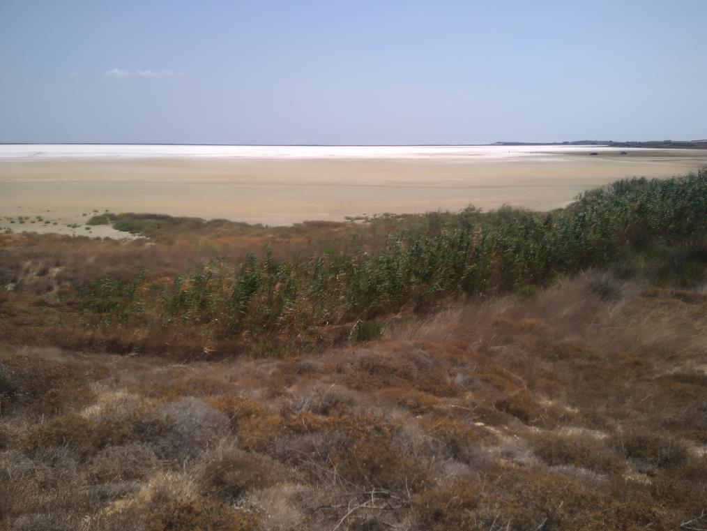 in de richting van Plaka, kom je langs het zoutmeer. Er zijn een paar plaatsen waar je vrij dicht langs de zoutvlakte komt.
