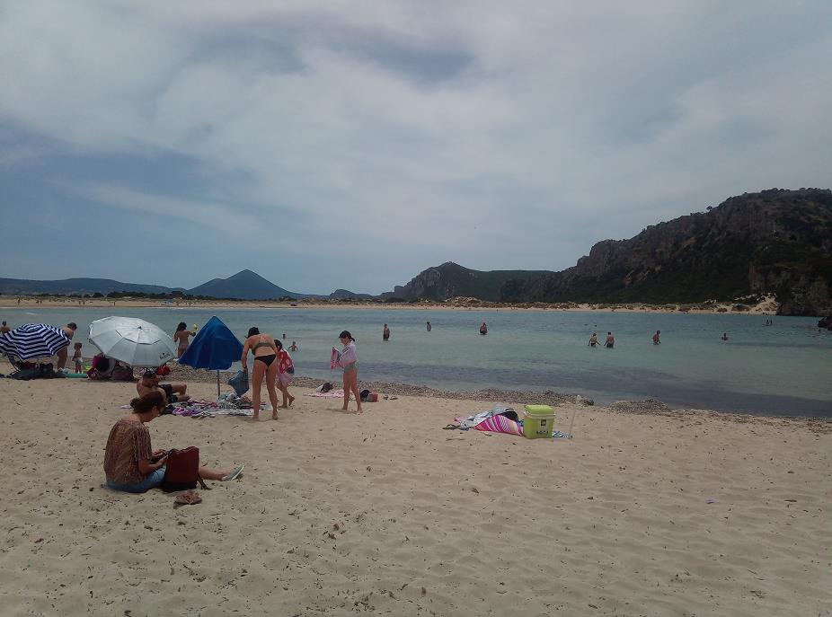 via rotspartijen en boomwortels weer naar beneden. Het strand bestaat uit zand, maar in het water is het rotsachtig.