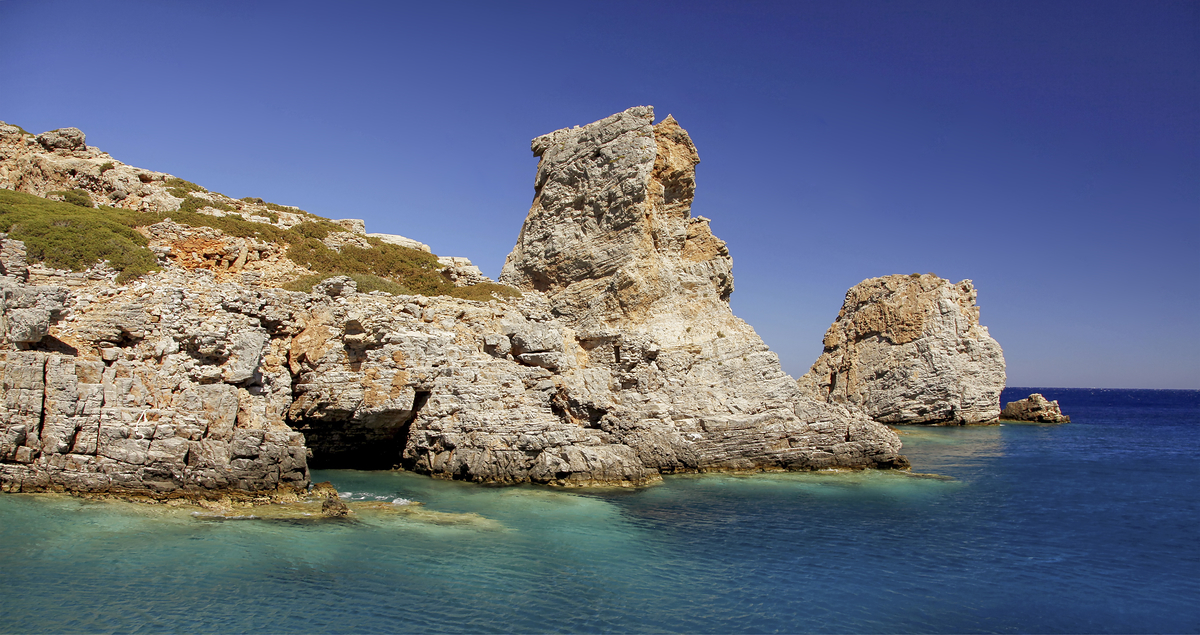 Het eilandje Saria ligt ten noorden van het veel grotere Karpathos. Het is een