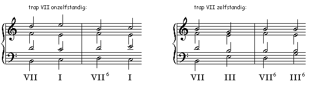 Zoals uit het onderstaande voorbeeldje blijkt, staat de nevendrieklank VII trapsgewijs tussen V en II.
