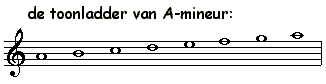 Wanneer we dus van deze toonladder de 1e + 3e + 5e toon te nemen, hebben we het A-mineur-akkoord gevonden.