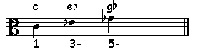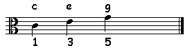 | grote drieklank | reine prime | grote terts | reine kwint | kleine drieklank | reine prime | kleine terts | reine kwint | verminderde drieklank | reine prime | kleine terts | verminderde kwint | overmatige drieklank | reine prime | grote terts | overmatige kwint |