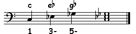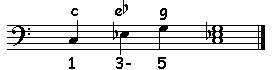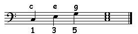 | grote drieklank | reine prime | grote terts | reine kwint | kleine drieklank | reine prime | kleine terts | reine kwint | verminderde drieklank | reine prime | kleine terts | verminderde kwint | overmatige drieklank | reine prime | grote terts | overmatige kwint |