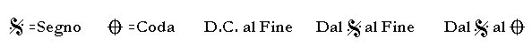(repeat from the Sign and stop at Fine) or in Dal Segno al Coda. (repeat from the Sign and then to Coda)