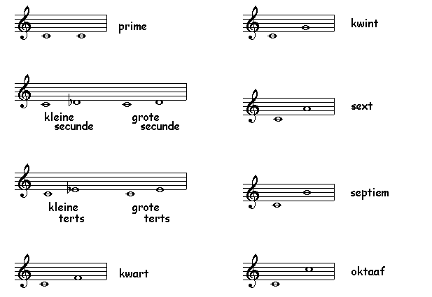 De afstanden tussen twee tonen noemen we intervallen.