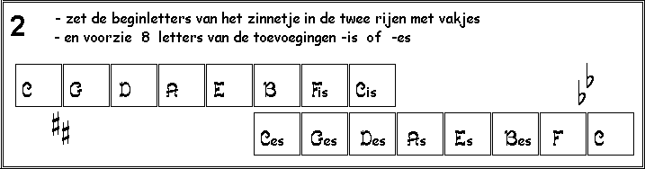 Zo je weet staan in de kwintencirkel alle toonladders in volgorde van het aantal kruizen en mollen.