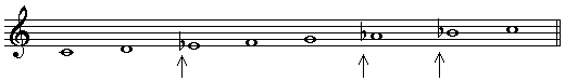 It starts a minor third under the first tone of the major scale.