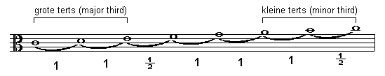 is the same as 2 whole tones. A minor third is just 1 and 1/2 tone. The natural scale always starts with a
