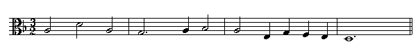times the note B. The interval between G and B is a major third. So the key of this piece is G-major.