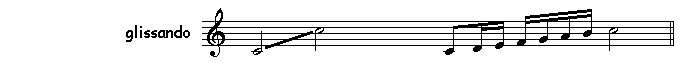 Het glissando kan ook op diverse manieren worden gespeeld; naast de afgebeelde mogelijkheid, die men meestal